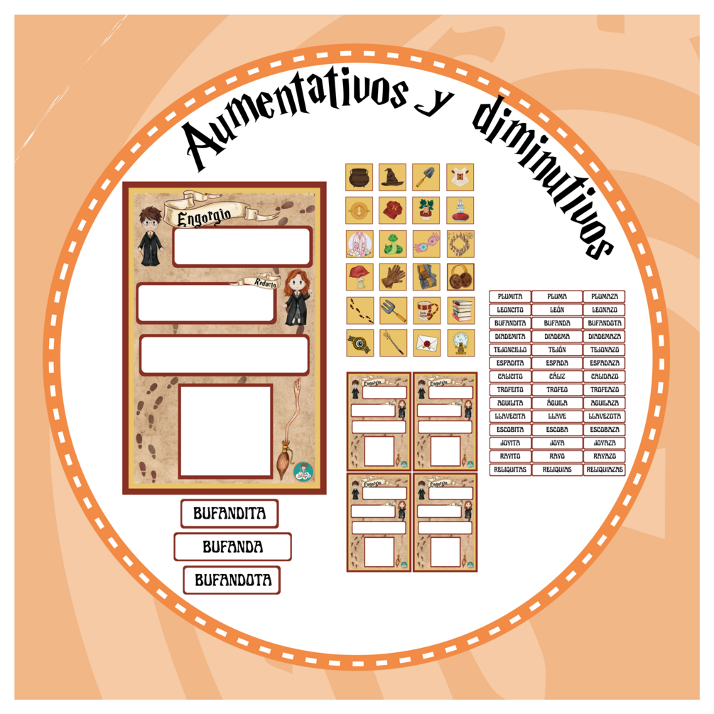 •Recurso aumentativos y diminutivos 'Engorgio - Reducto' (editable en Canva)